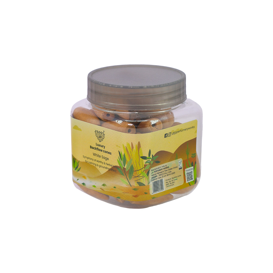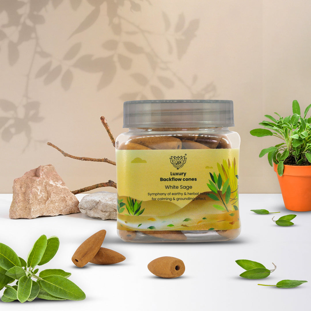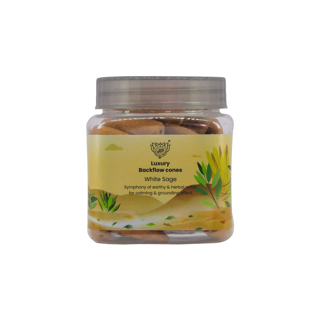 Introducing our world of Luxury Backflow cones, featuring the harmonious aroma of "White Sage." These exquisite cones offer a captivating symphony of earthy and herbal notes that create a calming and grounding effect, making them an essential addition to your wellness and relaxation rituals.
